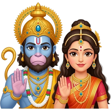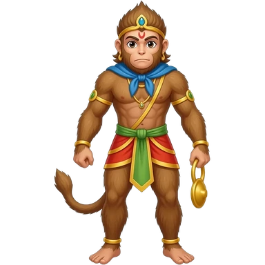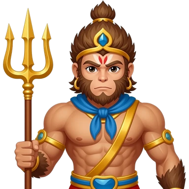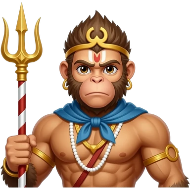 Hanuman com cara de macacoforte, musculoso com tridente emoji