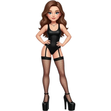 Apple sticker style, girl in black bodysuit and huge platform stripper heels, hand on hip, white background, 1:1 emoji