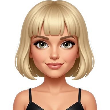 Victoria Beckham, fair skin, short blonde bob, black bodysuit and black heels. emoji