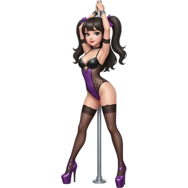 "A female pole dancer wearing a tight bodysuit like a swimsuit, standing on very high platform heels (stripper heels), exotic dance pose, confident look, emoji style" emoji