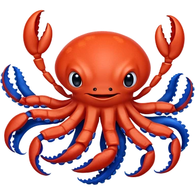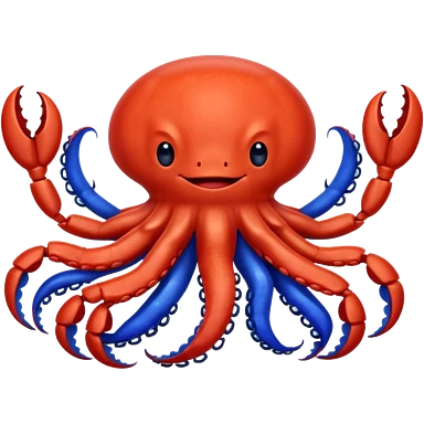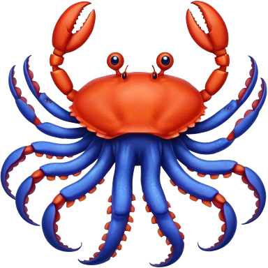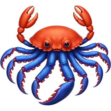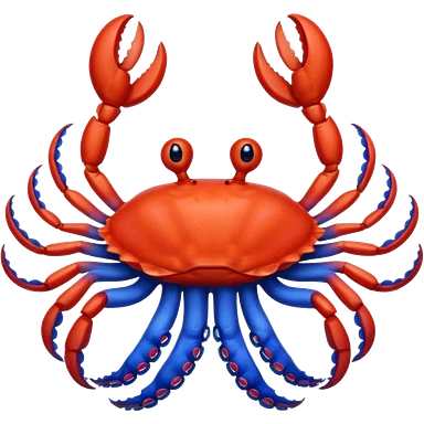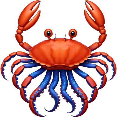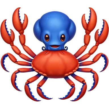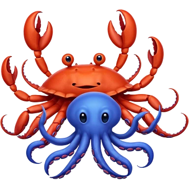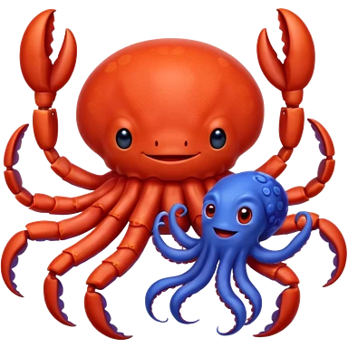 a red crab with two claws and a blue octopus are friends emoji