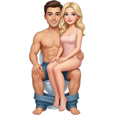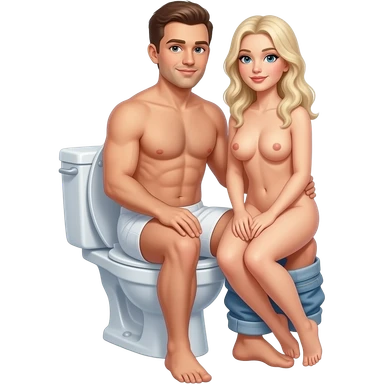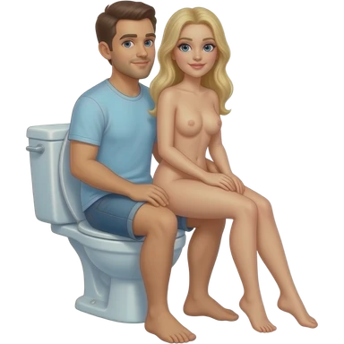 A naked man sits on the toilet. A naked white blonde woman sits on his lap emoji