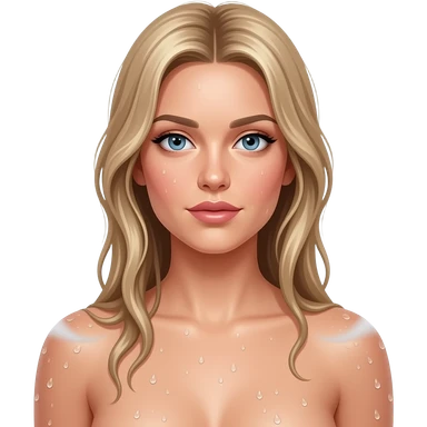 A naked white blonde woman sits on the toilet taking a picture of her crotch. She is looking at the camera emoji