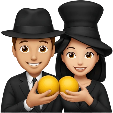 Man wearing black hat smiling superstitious woman squeezing his balls emoji