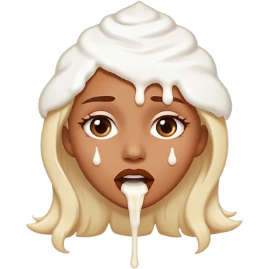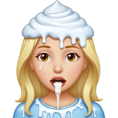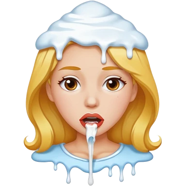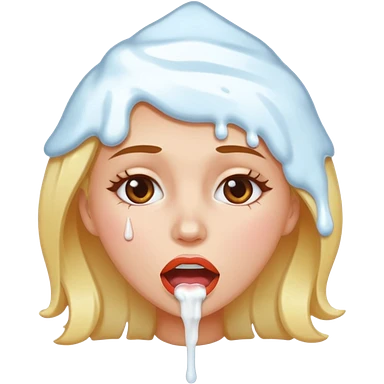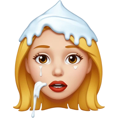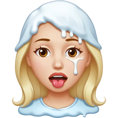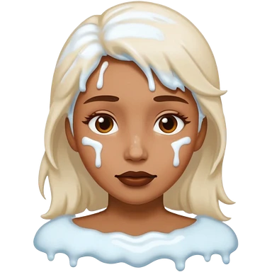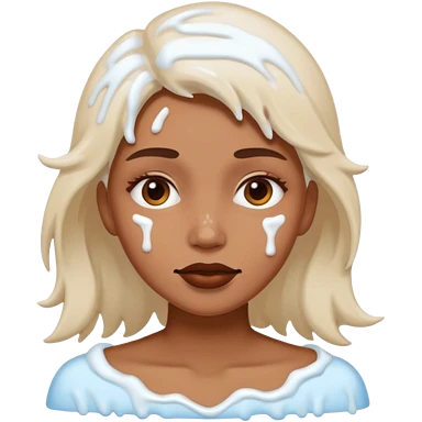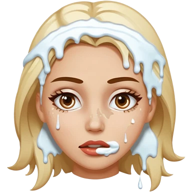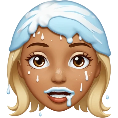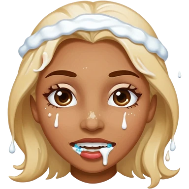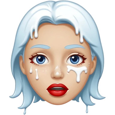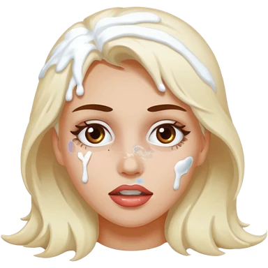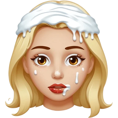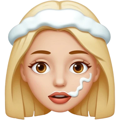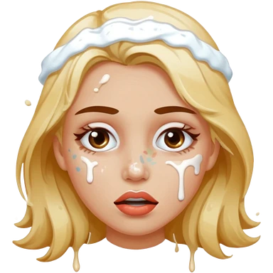 white icing on woman just on the mouth and eye area more splattered not in the hair emoji