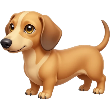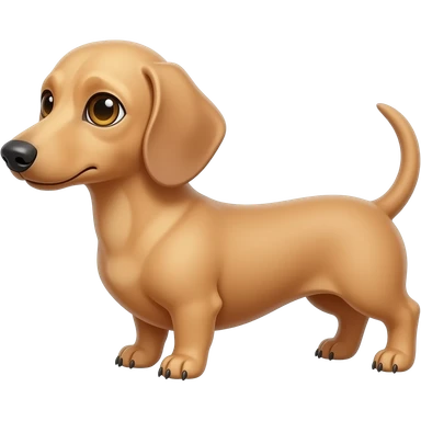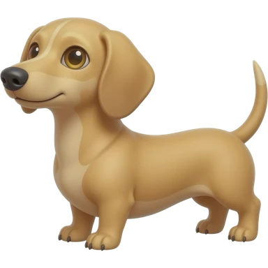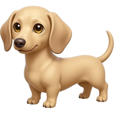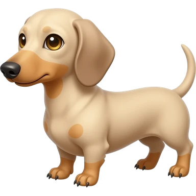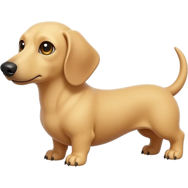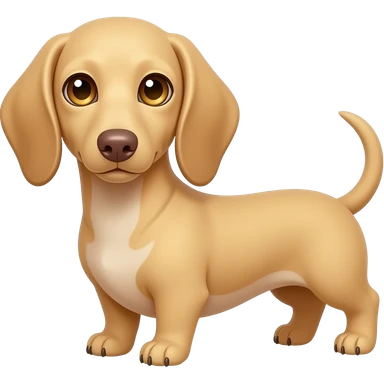 A small and thinnish dachshund with narrow width snout and a cream/blonde colored, short haired coat with gold colored eyes, a pink/light brown colored nose, and tan colored claws emoji