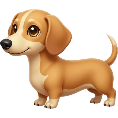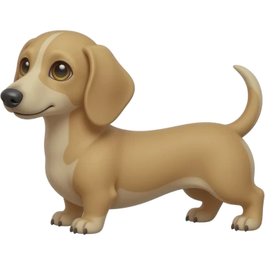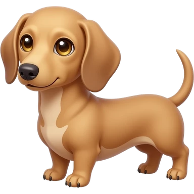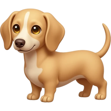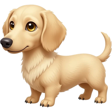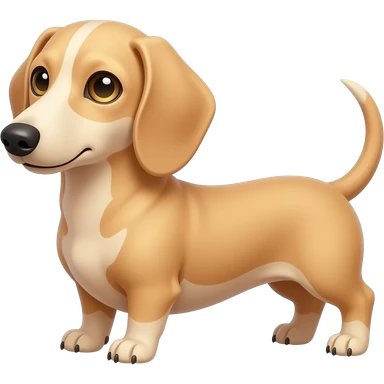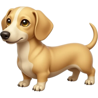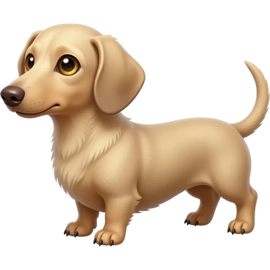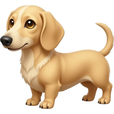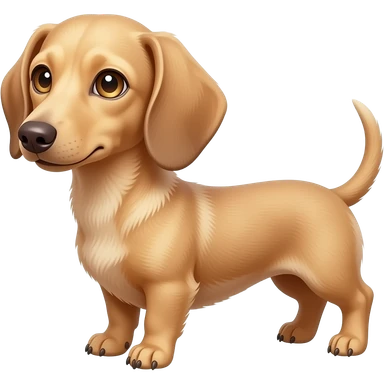 A small and thinnish dachshund with narrow width snout and a cream/blonde colored, short haired coat; has gold colored eyes, a pinkish brown colored nose, and tan colored nails emoji