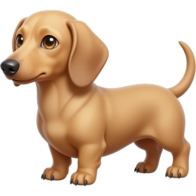 A small, thin dachshund with a narrow snout; has a faded pink-brown colored nose and a creamy blonde colored coat; has gold colored eyes and tan colored claws emoji