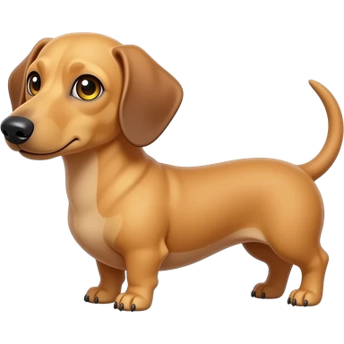 A petite and thin dachshund, with a narrow snout, pink nose, a blonde coat, and gold colored eyes emoji
