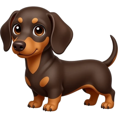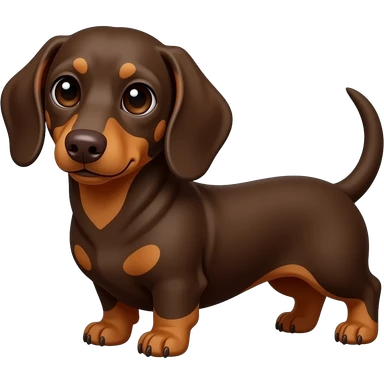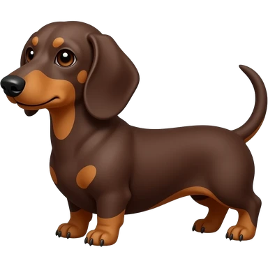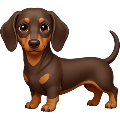 A chocolate and tan dachshund, but with a more dark auburn red color and very faint looking tan points; brown colored eyes and a brown nose emoji