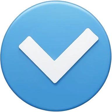 Simple blue circle check mark badge, minimal flat style, transparent bg --ar 1:1 emoji