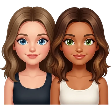 Bestfriends one girl lightly tanned with darkish blonde hair and blue eyes other girl tanner with green eyes brown hair with highlights emoji