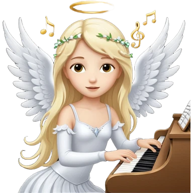 fée vêtue de blanc jouant du piano avec des ailes d'ange emoji
