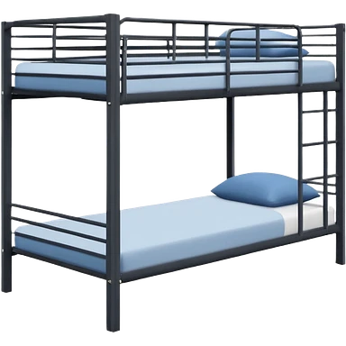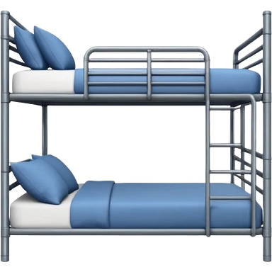 Simple wooden frame, vertical ladder, basic mattresses, often in children's homes or military barracks. emoji