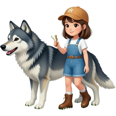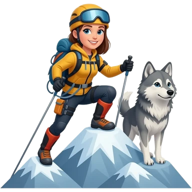 Chica alpinista sube una montaña con un lobo a su lado emoji