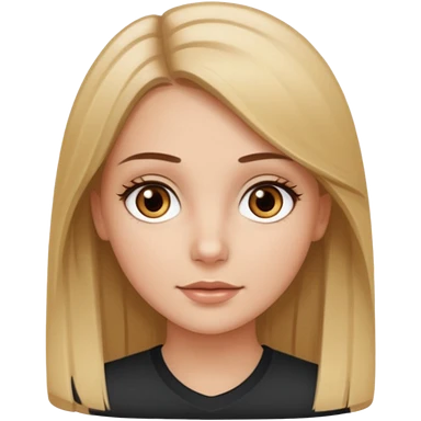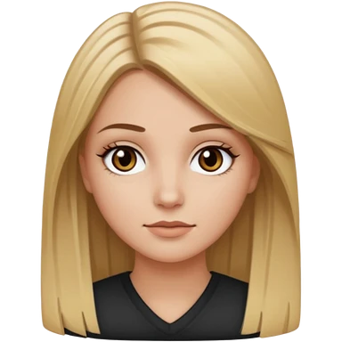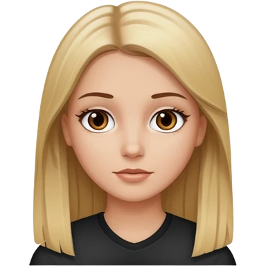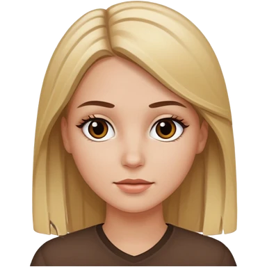 Make a white girl with black eyes, brown straight hair with brown hair and blonde highlights emoji