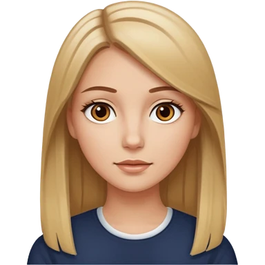Make a white girl with brown eyes, brown straight hair with blonde highlights emoji