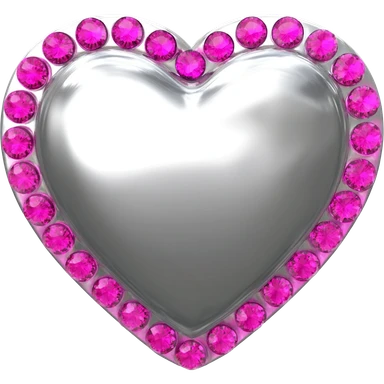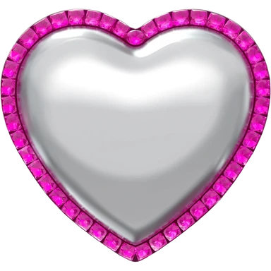 Shiny silver heart with bright pink circle rhinestones tracing along the outline emoji
