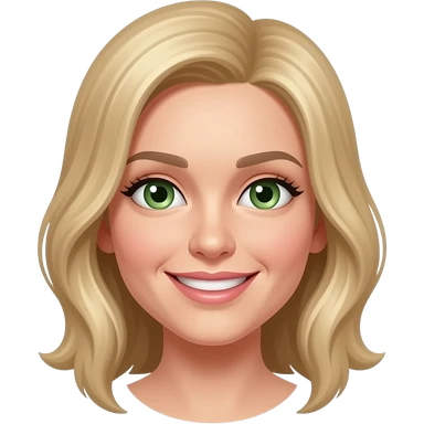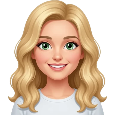 face of woman with long wavy blond hair and green eyes, smiling emoji