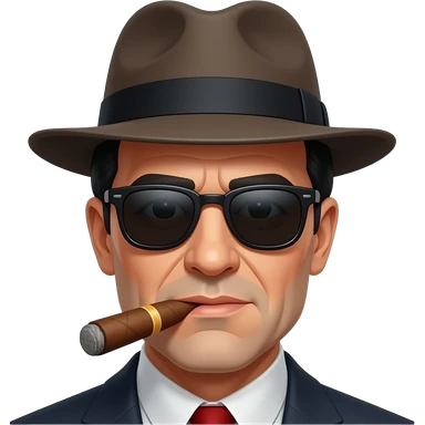 fthe goffather with cigar emoji, face closeup, sunglasses, black hair, hat emoji