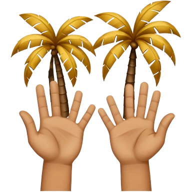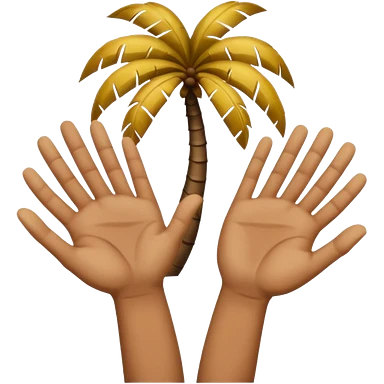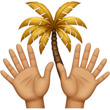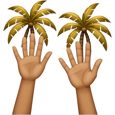 Two upward facing palms one a Little higher than the other. Over the one on the lest there is a 6 and over the one on the right there is a 7 emoji