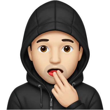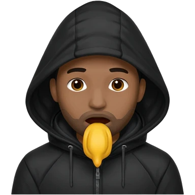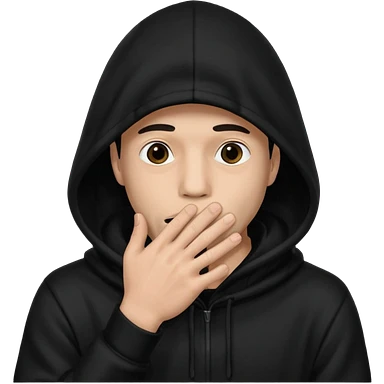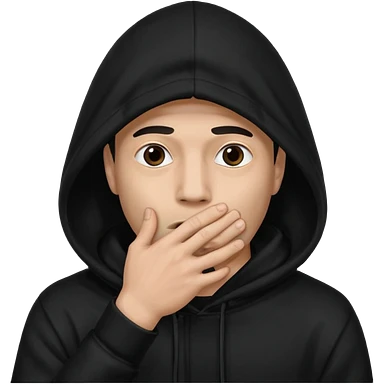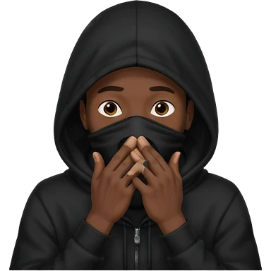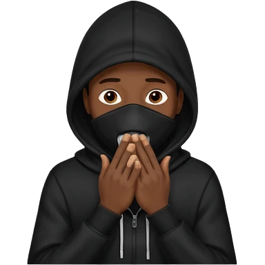 fait un homme noir avec une cagoule noir qui couvre sa t锚te, ses mains doivent 锚tre sur sa bouche comme si il se la cachait emoji