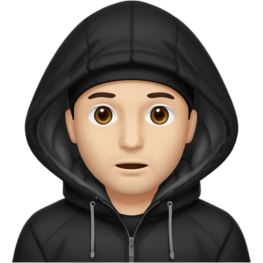 馃シ馃徑: inspire toi de cet emoji faisant en sorte qu鈥檌l est les mains sur les deux c么t茅s de la t锚te, garde sa cagoule noir avec uniquement ses yeux apparent emoji