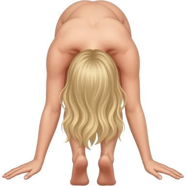 nude women standing on feet slightly apart, leaning forward at the waist, long blonde hair, arms on knees, upper body leaning forward emoji