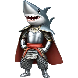 A 3D-style chrome figurine of a shark in a samurai outfit. emoji
