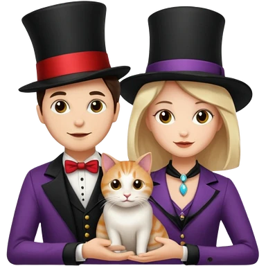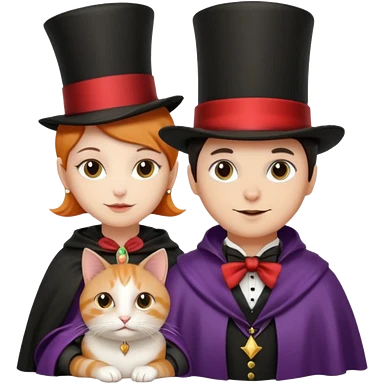 magician couple and their pet cat emoji