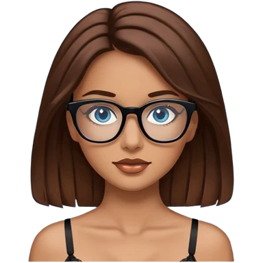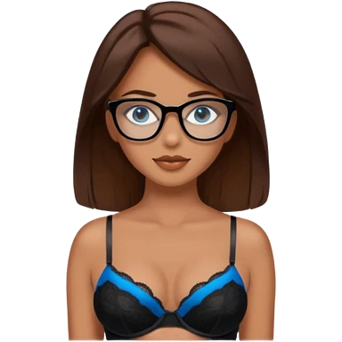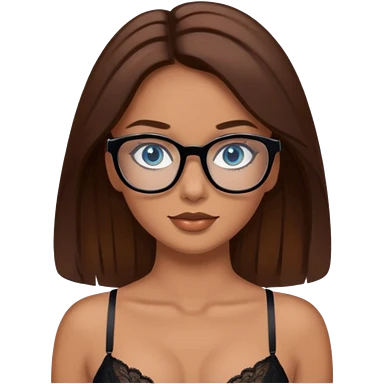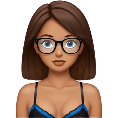 Brown, brown hair, blue eye, beautiful woman with black glasses I’m wearing lingerie emoji