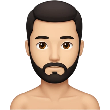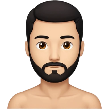 A man with black eyes. With a black beard and medium smooth hair. with the neck without clothes emoji