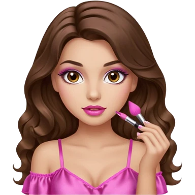 girl with long wavy brown hair, brown eyes, long lashes makeup, sexy pink lips, light to medium complexion, wearing a pink sexy top emoji
