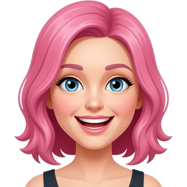 Woman with pink hair and blue eyes laughing emoji