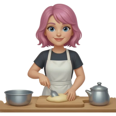 Woman with pink hair and blue eyes making pizza emoji