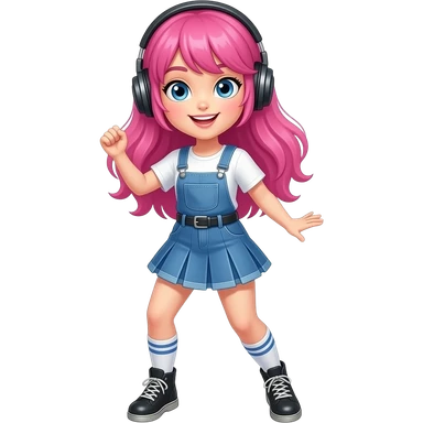Girl with pink hair and blue eyes dancing to pop music emoji
