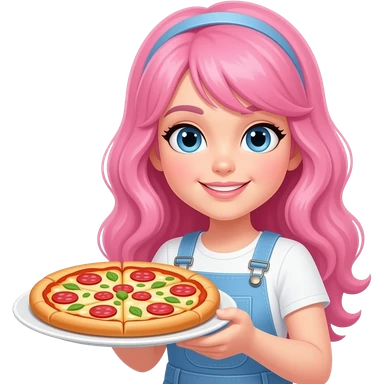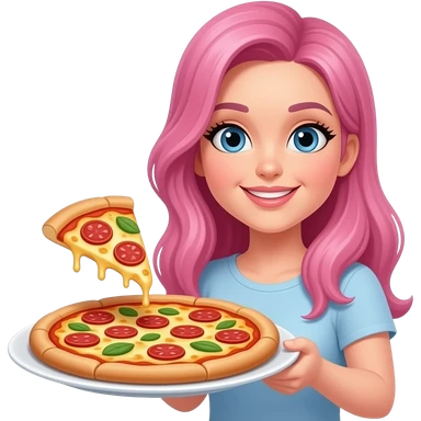 Girl with pink hair and blue eyes serving pizza emoji
