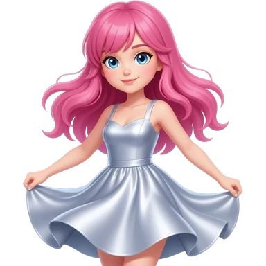 Girl with pink hair and blue eyes dancing emoji