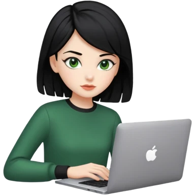 PON UNA NIÑA EN UNA LAPTOP PELINEGRA Y OJI VERDE CON LA ROPA COQUETT Y EL PELO AESTHETIC emoji