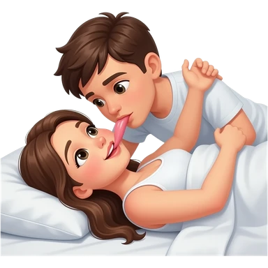 boy licking girls vagina in bed head between her legs and the girl holding his head emoji