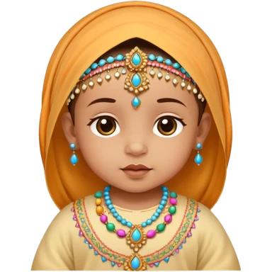 baby, dressed in colorful ghalibiya with delicate decorations emoji