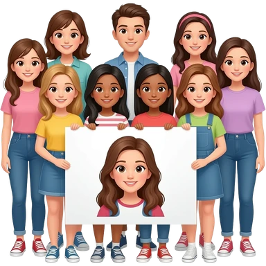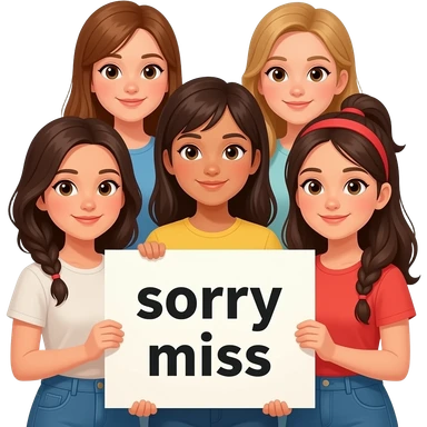 a whole class of girls with an apology sign , it should be written sorry miss emoji