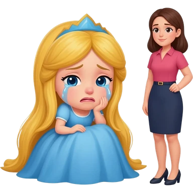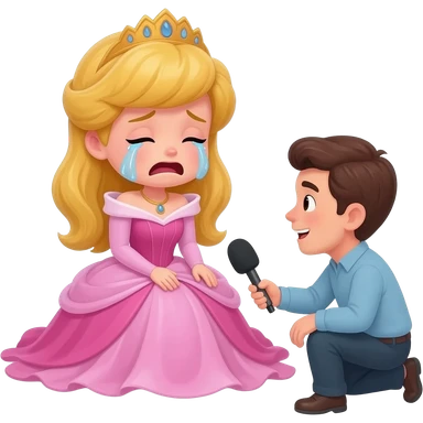 fes una princesa que estigi aseguda al terra plorant i una entrevistadora la vingi ha enrevistar emoji