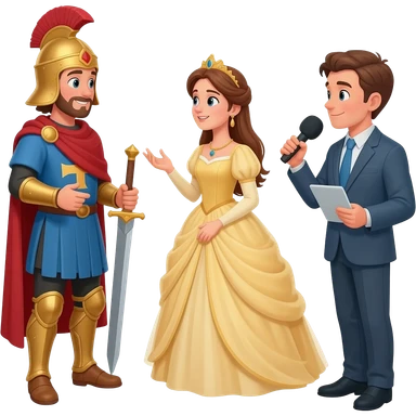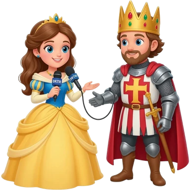 sant jordi i la princesa discutin. ina enrevistadora gravan la situacio emoji