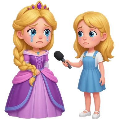 fes una princesa petita que estigi aseguda al terra plorant i una entrevistadora la vingi ha enrevistar amb camara i un micro que sigi noia emoji