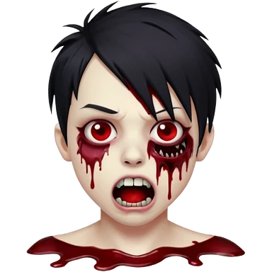 emo zombie black punk hair with cuts on face and open mouth with fluid coming out of mouth emoji
