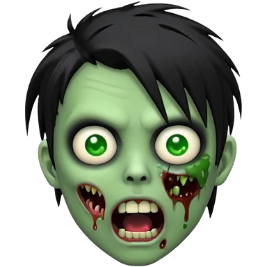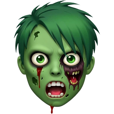 emo zombie black punk hairs green skin with cuts on face and open mouth with fluid coming out of mouth emoji