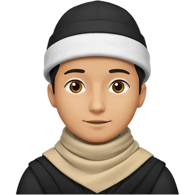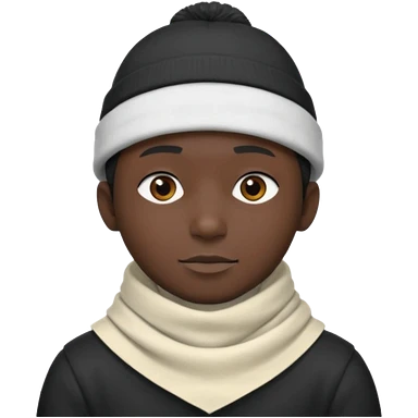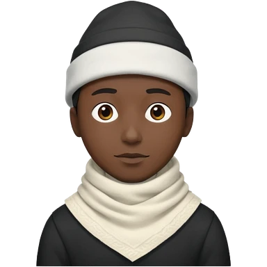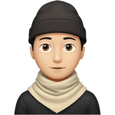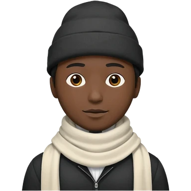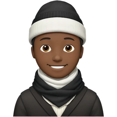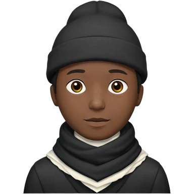 A guy with a triangle body with no arms and legs then his head is a perfect circle and his head is also black then give him a hat that doesn’t go behind his head, and last but not least give him a white scarf emoji