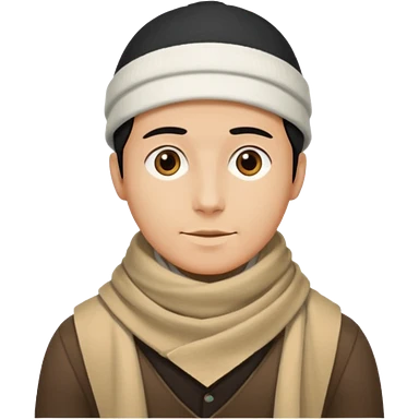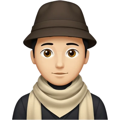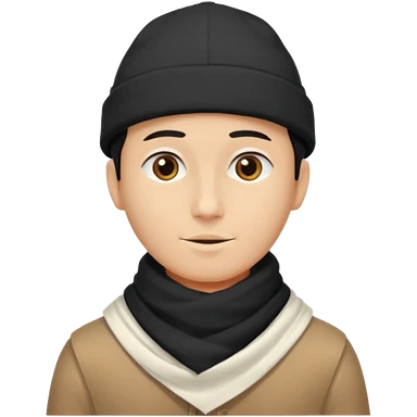 A guy with a triangle body with no arms and legs then his head is a perfect circle and black then give him a hat that doesn’t go behind his head, and last but not least give him a white scarf emoji