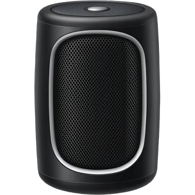 Single simple black desktop speaker, one round white cone with black center, boxy shape, clean white background, product photo. emoji